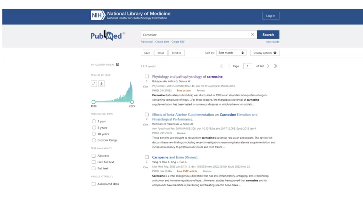 Carnosine is a naturally occurring dipeptide (made of beta-alanine and histidine) that is found in high concentrations in muscle and brain tissue. It’s available both from diet (mainly meat) and as a supplement. Research into its effects is ongoing, but there are several medically studied and evidence-based benefits: