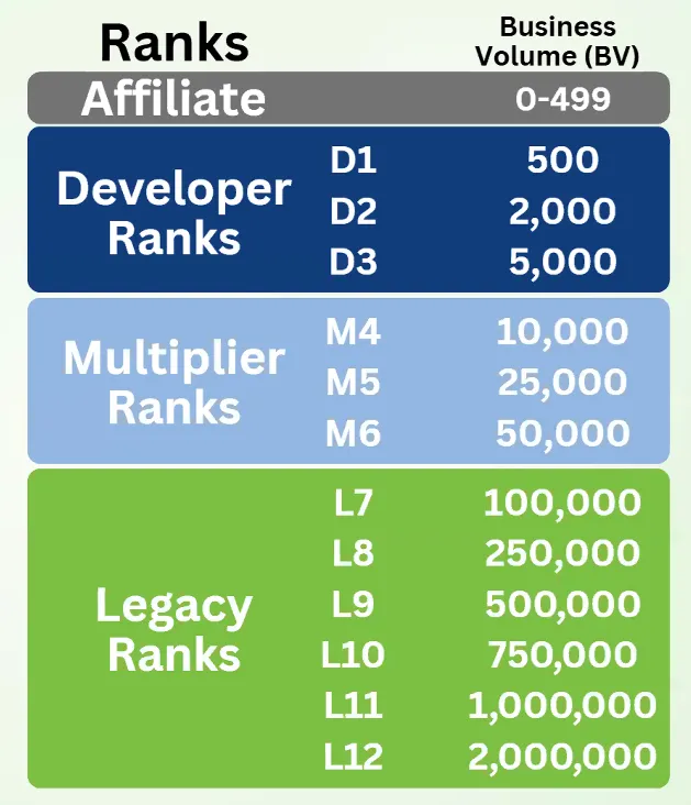 Earn Rank Achievement Bonuses from between $100 and $1500 every month you maintain that achieved rank.